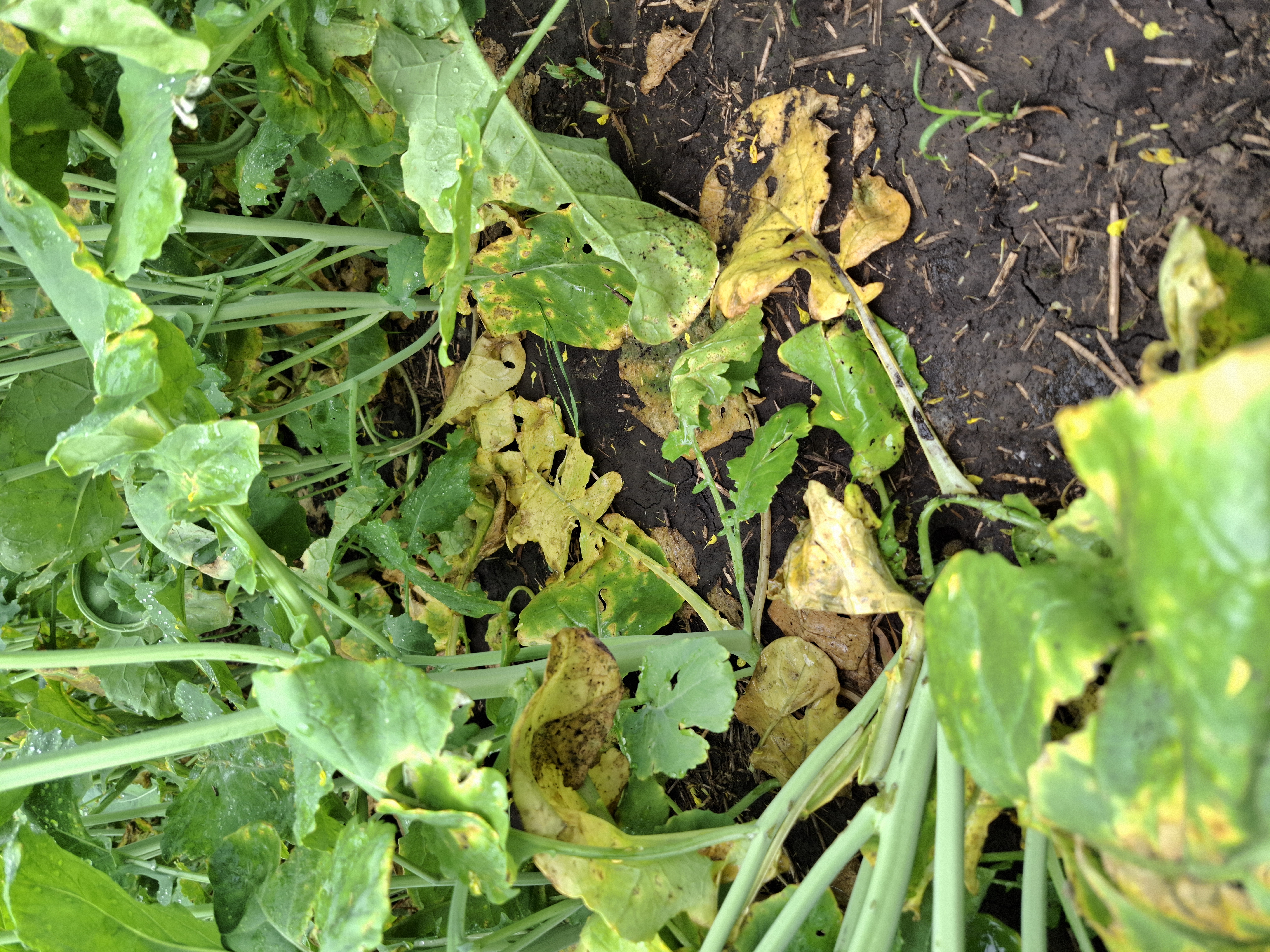 Пораженные растения отстают в росте, резко уменьшается величина листьев. Если поражение происходит в фазе семядолей, растения рапса погибают. Недобор зеленой массы может составлять до 25%, урожай снижается